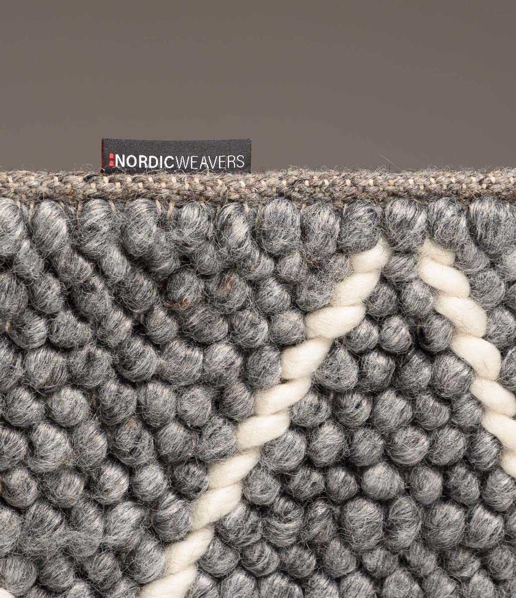 Estamos muy satisfechos con los productos de Nordic Weavers. Alfombras de lana con un toque escandinavo. La mejor calidad que hemos vendido nunca. Comienza con la selección de la lana, donde se elige una raza especial de ovejas con pelo especialmente largo y fuerte. También llamada lana de Nueva Zelanda. La lana se limpia muy a fondo. Y luego se tiñe de la forma tradicional. La lana se mezcla con una pequeña cantidad (10 %) de viscosa para dar un poco más de vida al hilo.