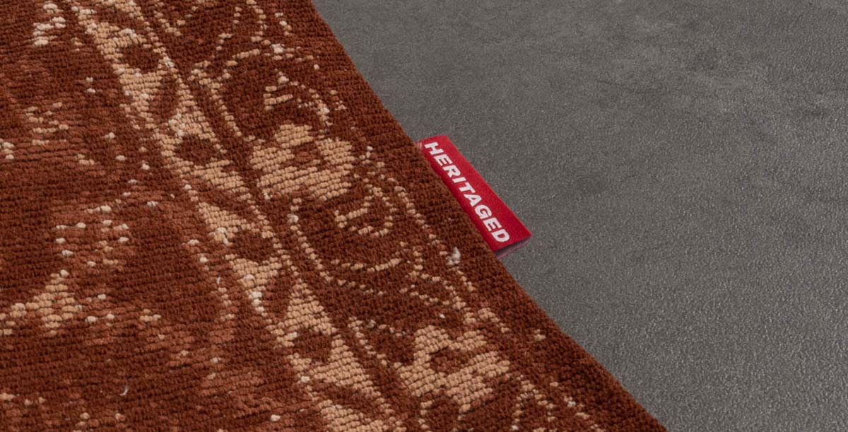 Las últimas alfombras vintage de la marca Heritaged. Las alfombras son de chenilla y están tejidas a mano. Así se consigue el aspecto tejido más bello posible para las alfombras vintage. Muchas alfombras sólo tienen aspecto de chenilla y en realidad no están tejidas así. El tejido de chenilla es un proceso más intensivo y “caro” que el simple tejido a máquina.